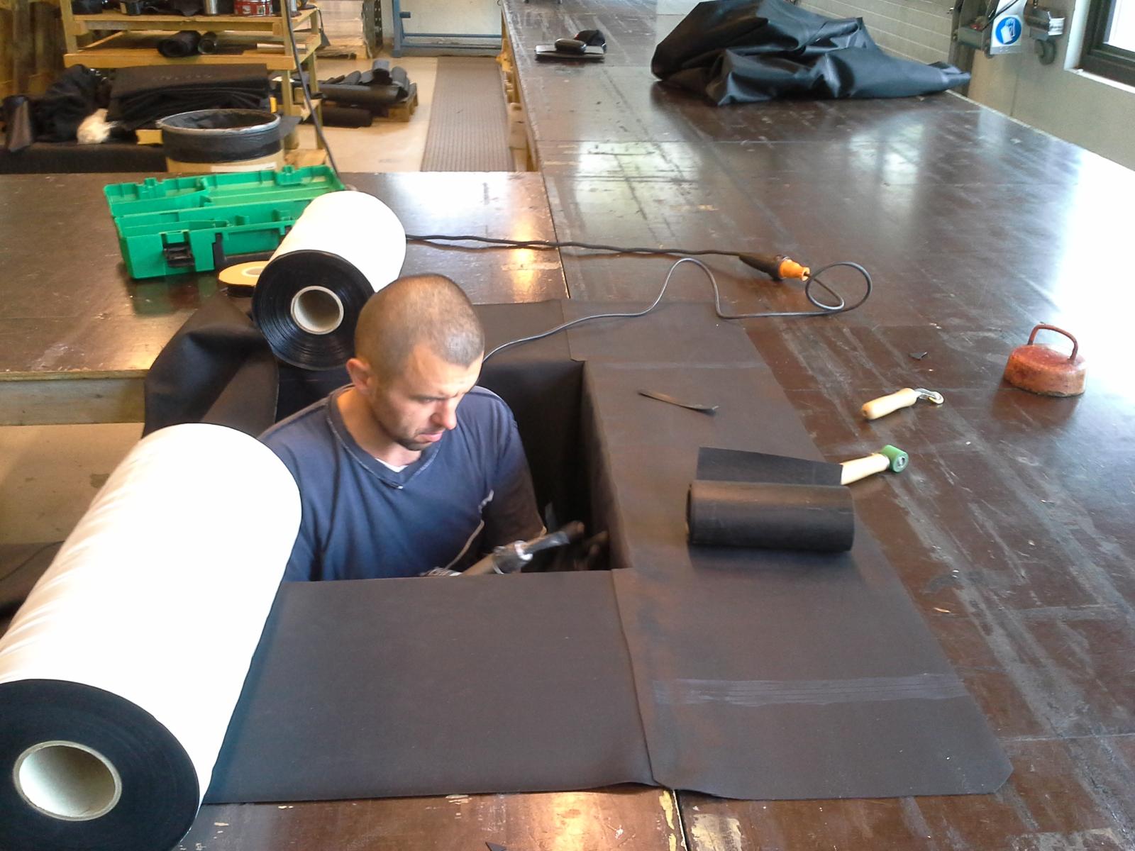 Alle membranene prefabrikkeres etter mål og leveres i ett stykke. Det er en veldig fleksibel duk som former seg etter underlaget etterhvert som man fyller på vann.